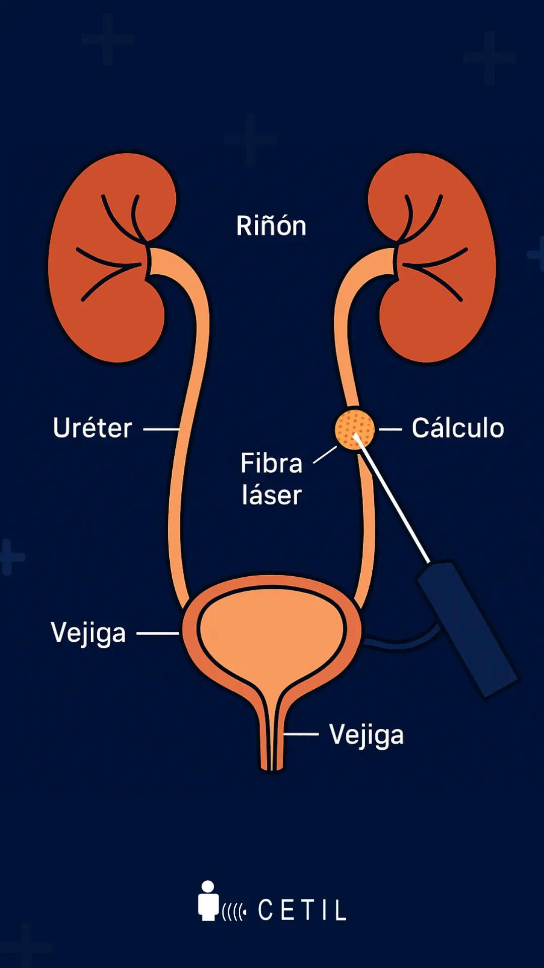 En CETIL, realizamos el tratamiento de litotricia endourológica con tecnología láser Holmium, una técnica mínimamente invasiva que permite fragmentar cálculos urinarios a través del uréter, sin necesidad de incisiones ni cirugías abiertas. Utilizamos equipos de última generación Medilas (Dornier) y endocámaras Storz, que nos permiten localizar y tratar con precisión los cálculos, siempre bajo anestesia y en un entorno seguro. Este procedimiento puede realizarse en una sola sesión o requerir un segundo abordaje complementario. En casos seleccionados, también puede combinarse con litotricia extracorpórea, optimizando así los resultados en pacientes complejos.