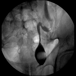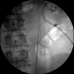 Paciente monorreno con voluminoso cálculo en ureter pelviano, portador de nefrostomía percutánea.